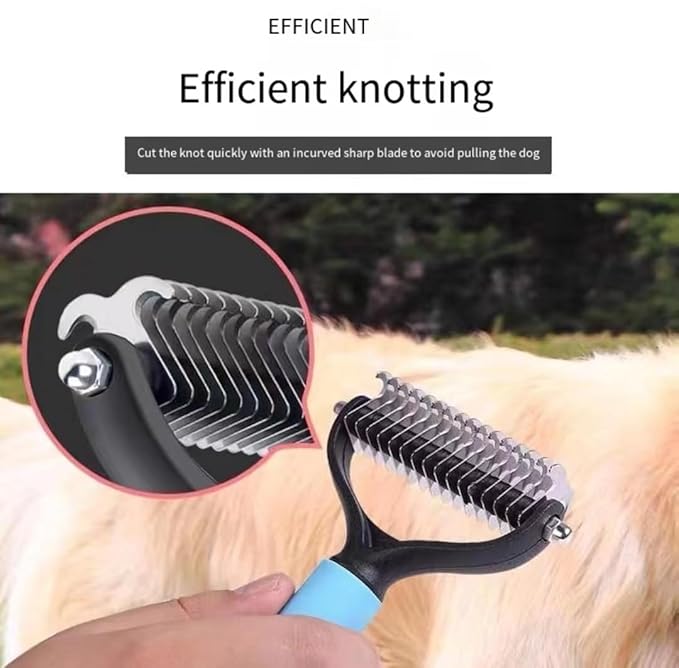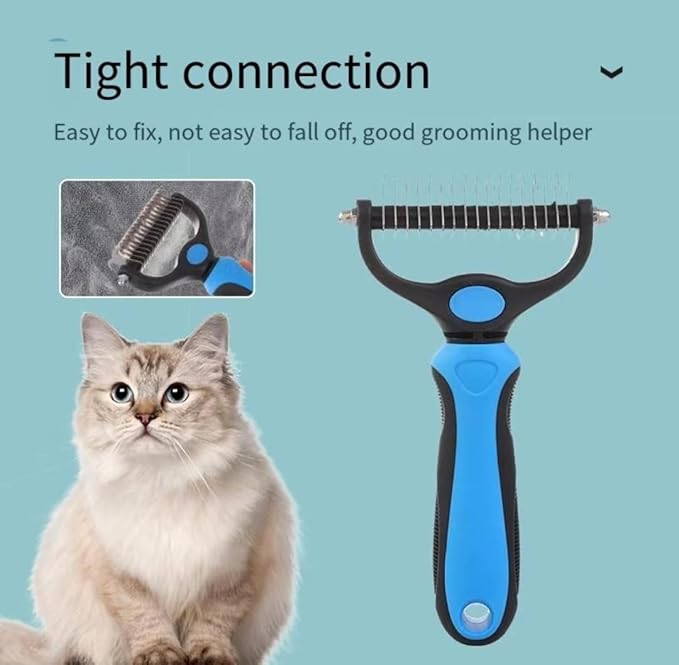 - 1. Dual-Sided Design for Effective Grooming One side features 9 sturdy stainless steel teeth to tackle stubborn mats and tangles, while the 17-tooth side gently thins and removes loose fur, ensuring a pain-free grooming experience for pets.