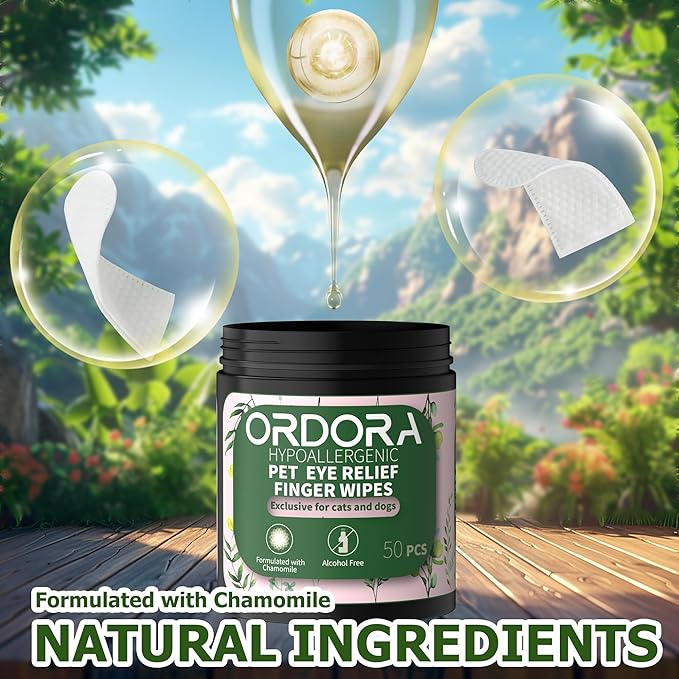 - Eliminate Tear Stains & Keep Your Pet's Eyes Clean – Tired of unsightly tear stains and buildup around your pet’s eyes? ORDORA dog eye wipes are specially formulated to remove tear stains, dirt, and mucus gently and effectively. These wipes offer a soothing solution that helps maintain your pet's eye health while keeping their face clean and odor-free. Perfect for pet owners dealing with persistent tear stains on both dogs and cats.