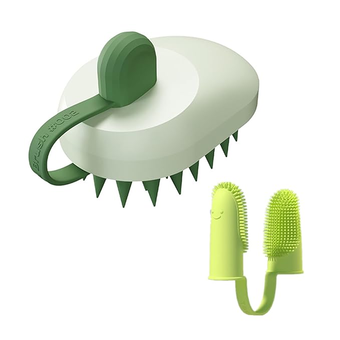 PPBond Mouse-Design Dog Bathing Brush & Double-Finger Toothbrush | Soft TPR+ABS | Soft & Flexible | Cleans, Massages & Removes Hair | Ideal for Dogs and Cats (green)