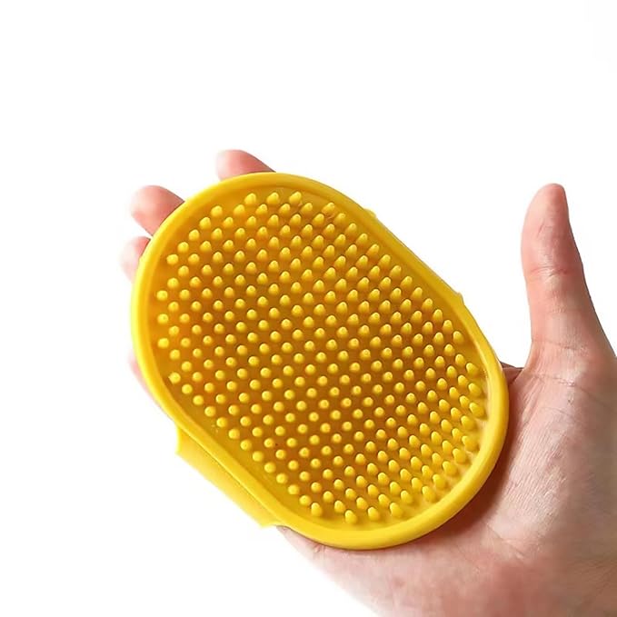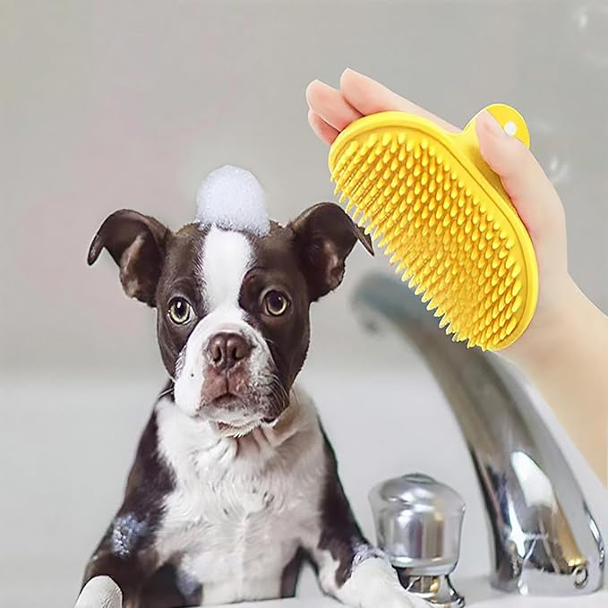 - Durable Dog Brush ; This dog bath massage brush is made of high-quality rubber material, which will not scratch your pet's skin. Ergonomically designed, it disperses foam very easily to deep clean your pet's coat and remove loose fur and dead skin. Make bath time more relaxing and enjoyable