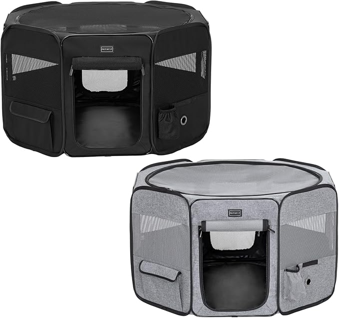 - 【Durable & Excellent Ventilation】The puppy playpen made of 8 breathable mesh panel with two doors, this pet play pen offer better airflow for your pets. The zippered door provides easy in/out access for your pet. The zippered door on the side of this playpen for dogs can be rolled up and glued, making it easy for your pet to enter and exit the pet fence.
