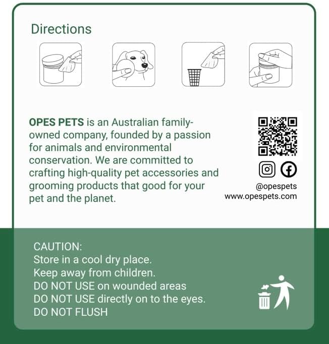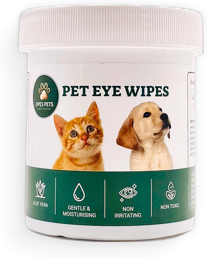 OPES Pets Cats & Dogs Eye & Face Wipes, Gently Removes Discharge, 100% Plant-Based, Biodegradable, 200 Count.