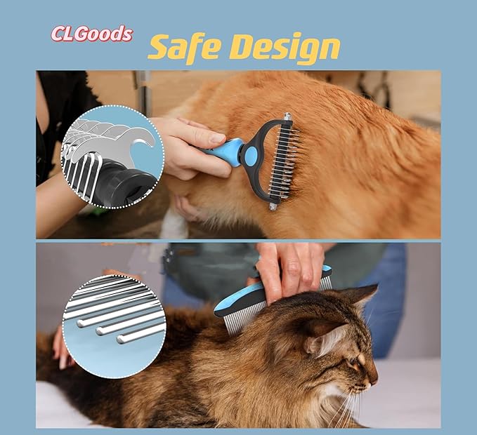 - Dual-Function Comb : Equipped with dual-sided stainless steel blades, our grooming comb effortlessly removes loose fur and gently detangles knots without discomfort.