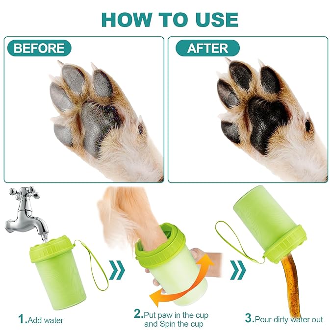- Safe Paw Cleaning: Our pet paw cleaner cup is crafted from carefully selected environmentally friendly platics, ensuring a softer and safer cleaning experience. It gently and effectively cleans your pet's large dirty paws without causing harm, keeping your furry friend clean and healthy.
