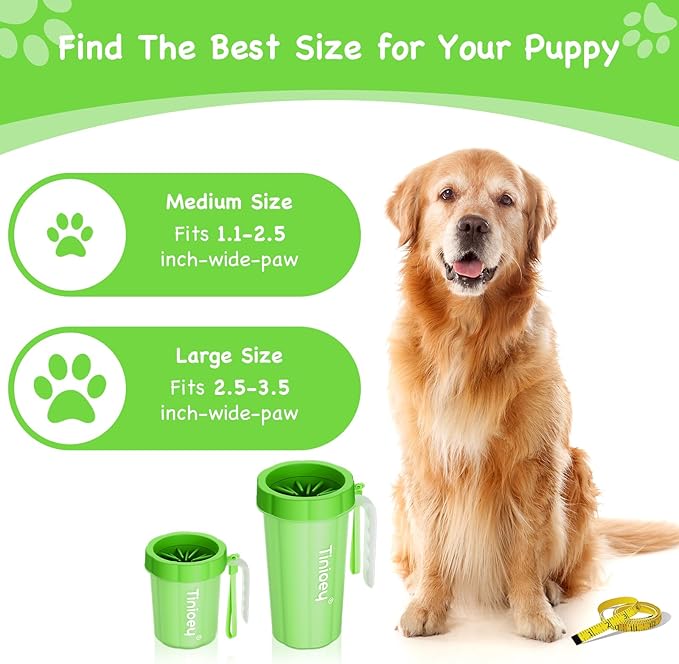 - 【Efficient Cleaning】Tinioey dog paw washer with handle offers a hassle-free solution for keeping your furry friend's paws clean. The innovative design of dog feet cleaner ensures thorough cleaning, removing dirt, mud, and other debris quickly and effectively. Compared with some dog paw cleanser foam, it is more suitable for cleaning a lot of mud on dog paws or dog legs on rainy days or after walking the dog outdoors.