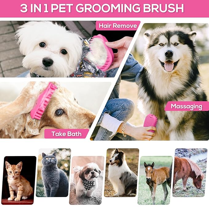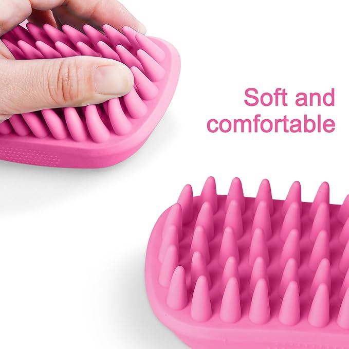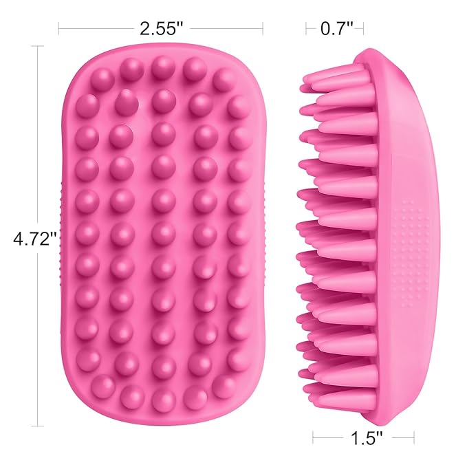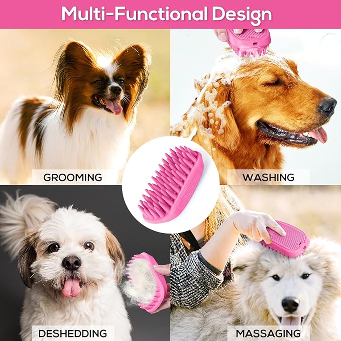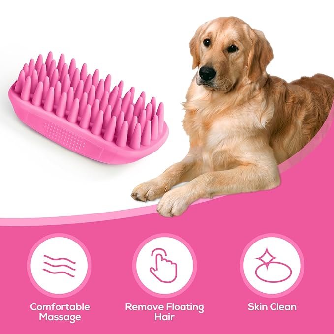 Dog Bath Brush, Dog Bath Supplies Silicone Shampoo Brush Long & Short Haired Dogs Cats, Scrubber Washing Grooming Pet Brush, Soft Massage Shedding Brush Bathing Shower Small Large Pets (Pink)