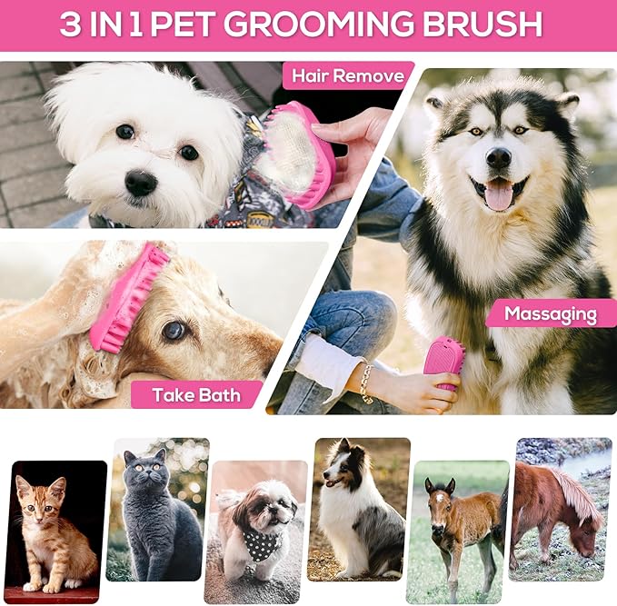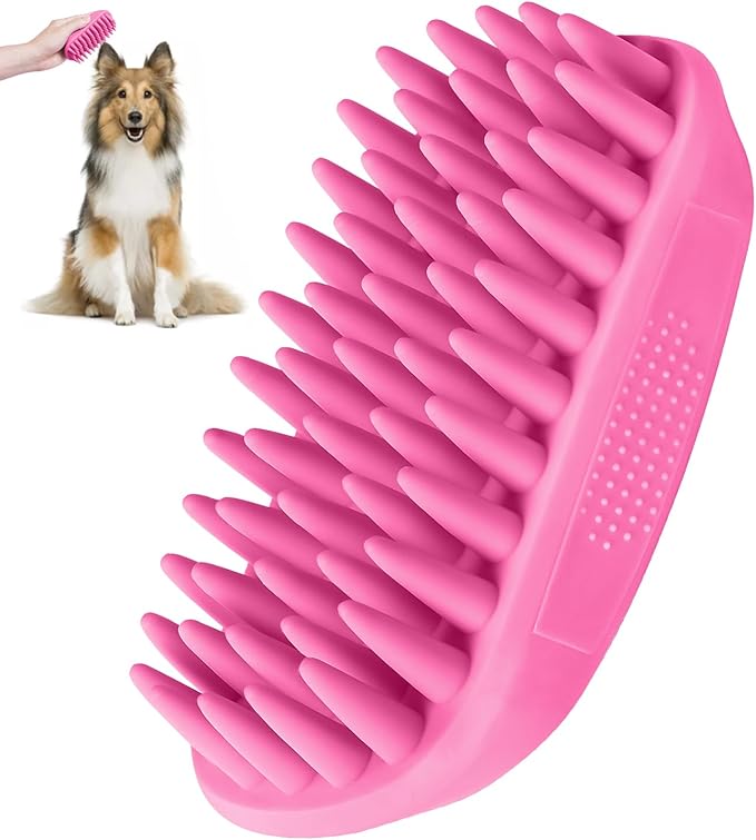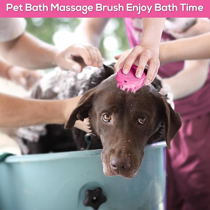 Dog Bath Brush, Dog Bath Supplies Silicone Shampoo Brush Long & Short Haired Dogs Cats, Scrubber Washing Grooming Pet Brush, Soft Massage Shedding Brush Bathing Shower Small Large Pets (Pink)
