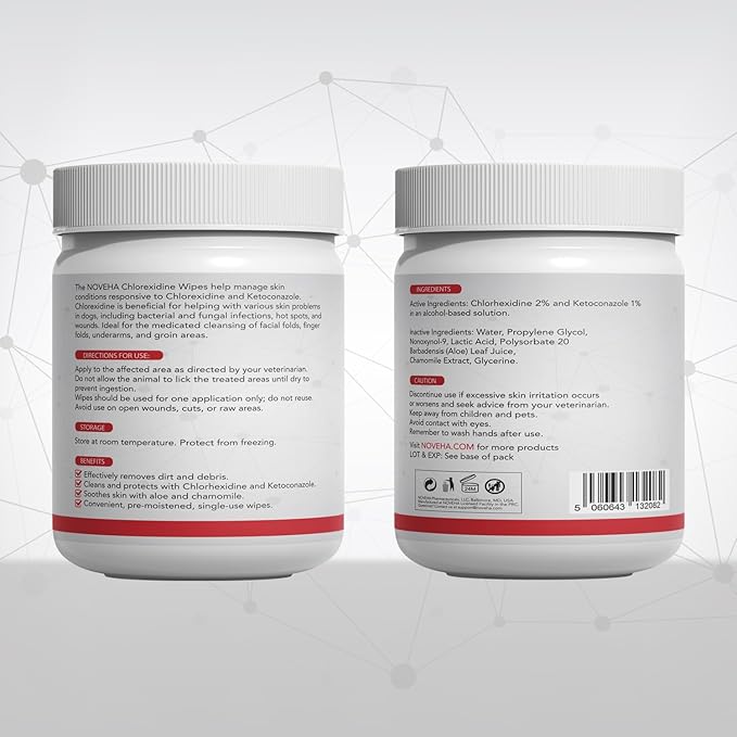NOVEHA Pet Wipes - Formulated Pet Wipes - for Facial and Finger Folds, Underarms - 3" x 2" Size (300 Counts)