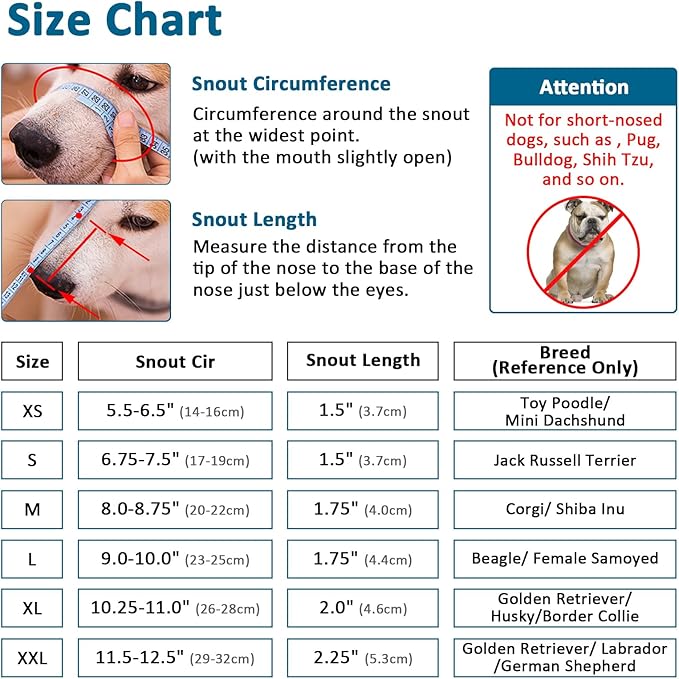 - Providing Satisfactory Service-If you have any issues with sizing or product quality before and after purchasing, we are happy to assist you. We strive to provide you with a satisfactory response. Each muzzle comes with a detailed instruction manual, so please be sure to read it thoroughly before using