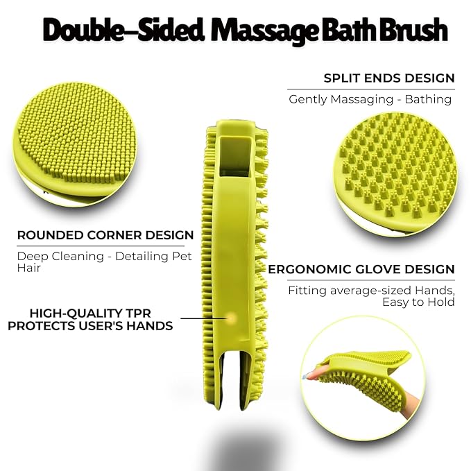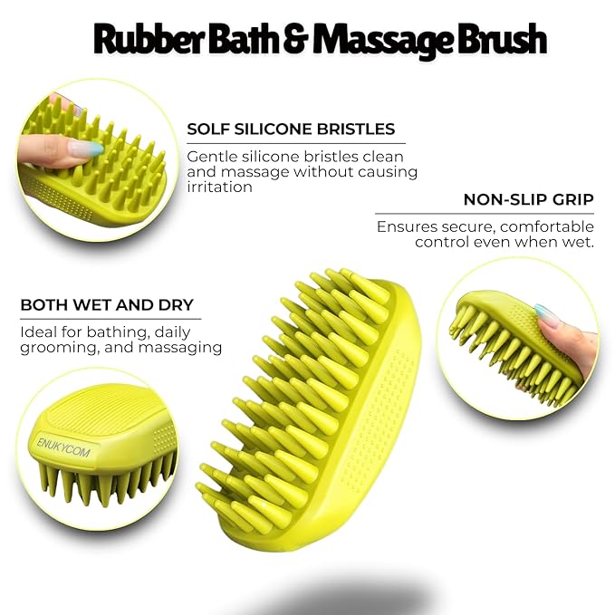- ❤️Gentle Silicone Bath Brush: Soft silicone bristles gently massage your pet's skin, improving circulation during bath time while effectively removing dirt and debris.