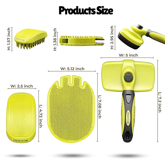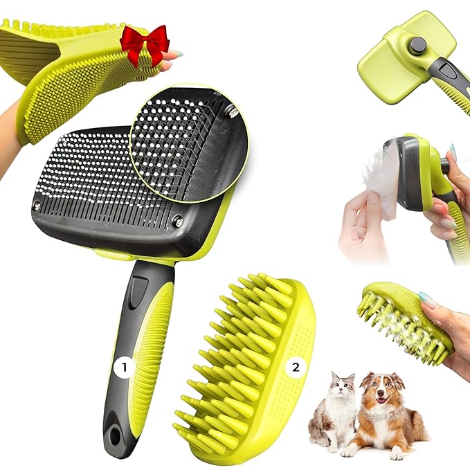 - 🐶🐱3-in-1 Pet Grooming Set: Includes a self-cleaning slicker brush, silicone bath brush, and deshedding tool, perfect for keeping your pet's coat healthy and clean.