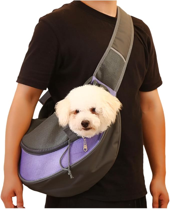 Pet Dog Sling Carrier, Breathable Mesh Bag for Puppy Cat, Crossbody Satchel Dog Purse with Pocket for Outdoor Travel (Violet, Small)