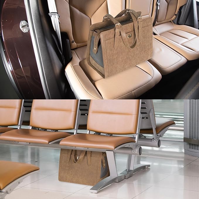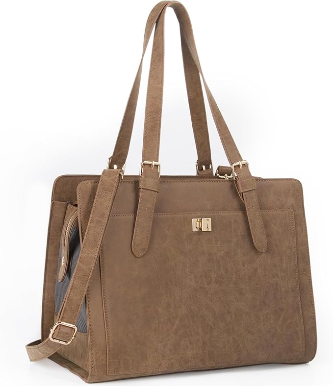 Stylish Pet Carrier Purse Leather Bag for Small Dogs Cats Puppy,Airline Approved Soft-Sided Carriers (Vintage Brown)