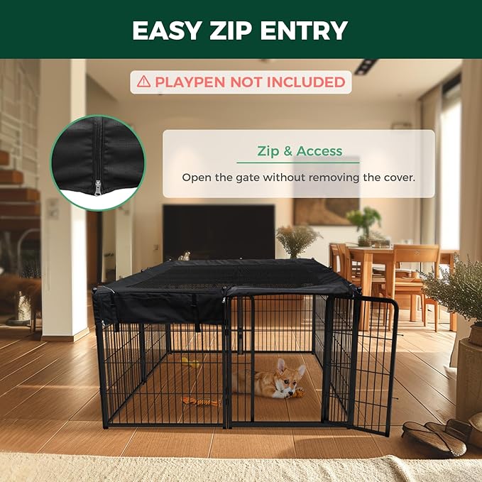 FXW Mesh Top Cover Specialized for FXW Dog Playpen (Not Suitable for Other Brands), Fits for FXW 32"/40"/45" H 8 Panels Homeplus/Rollick/Instant Dog Playpen│Patent Pending (Playpen not Included)