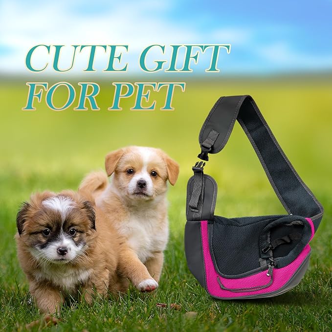 Pet Dog Sling Carrier, Breathable Mesh Adjustable Puppy Sling Carrier Hand Free for Small Dog Cat, M, Rose