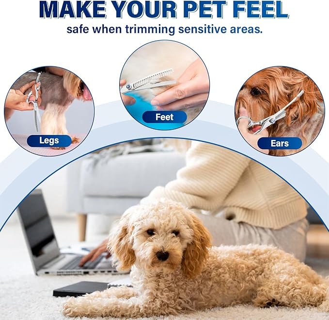 - Sharp Convex Edge: The razor-sharp blades of this grooming scissors provide precise cutting and grooming for your pet, making it easy to achieve professional results at home. The slightly curved blade allows you to more easily cut your dog's hair into a round and cute shape.