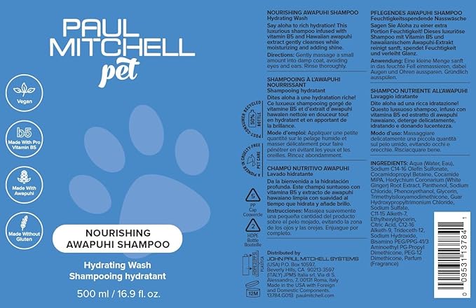 - Product Benefits : Vegan. Made with B5. Made with awapuhi. Made without gluten. A pioneer in cruelty-free pet care.