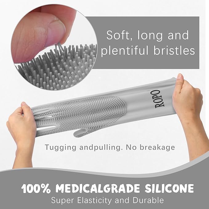 - MULTI-PURPOSE: You can take ROPO this pet bathing gloves with you when your beloved pet is taking a bath, removing loose hair while bathing, letting your pet enjoy the bath time, and can also be used to clean dishes, furniture, cars, widely used.