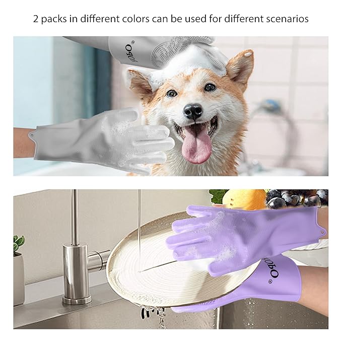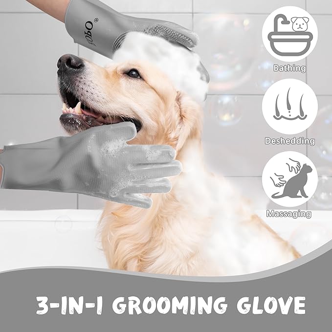 ROPO silicone gloves for pet grooming, multi-functional gloves for pet hair shedding, bathing, and massage (Grey+Purple)