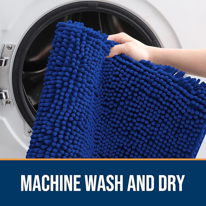OLANLY Dog Door Mat for Muddy Paws 36x24, Absorbs Moisture and Dirt, Absorbent Non-Slip Washable Mat, Quick Dry Chenille, Mud Mat for Dogs, Entry Indoor Door Mat for Inside Floor, Royal Blue