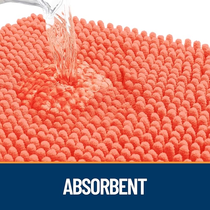 OLANLY Dog Door Mat for Muddy Paws 36x24, Absorbs Moisture and Dirt, Absorbent Non-Slip Washable Mat, Quick Dry Chenille, Mud Mat for Dogs, Entry Indoor Door Mat for Inside Floor, Coral
