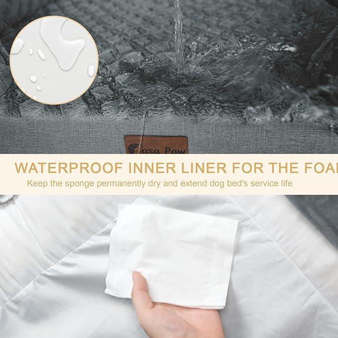- GEL & EGG CRATE FOAM: Casa Paw dog bed with bolsters adopts a design that combines memory foam and egg crate foam. Cooling gel infused memory foam helps relieve joints pains and heat dispersion, keeping pets cooling in hot summer. Egg crate orthopedic foam helps cushion pressure points and distribute weight evenly, keeping pets warm in cold winter. Our dog beds are suitable for all seasons and totally recommend for elderly dogs with anxiety and dogs with arthritis.