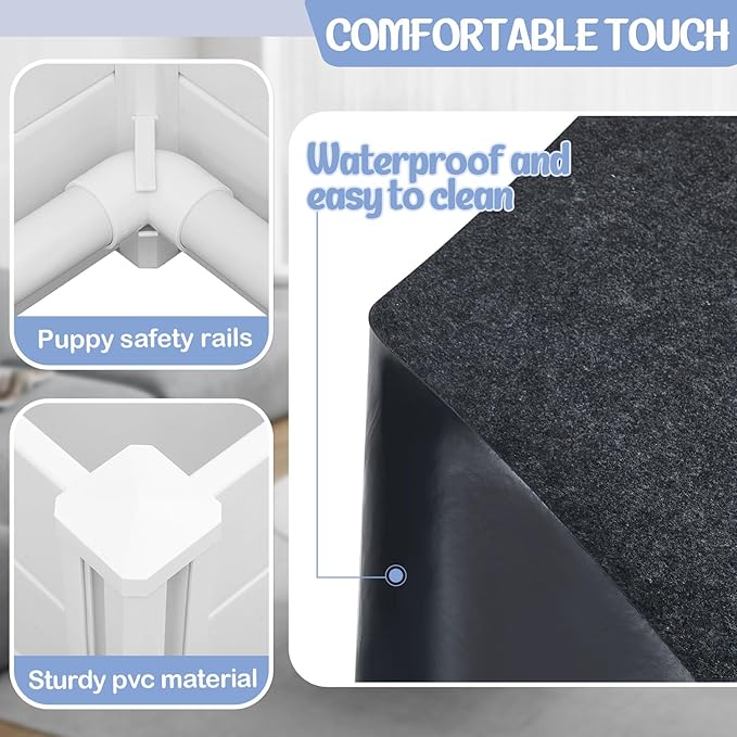 - Quality Material: crafted from sturdy PVC, this whelping box for dogs has been constructed to withstand the test of time; It's durable, reliable, making it your nice ally in taking care of newborn pups; Accompanied by a felt pad, this package defines ideal puppy whelping supplies for breeders