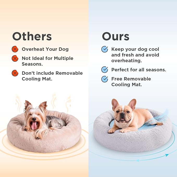 - 𝐃𝐨𝐠 𝐀𝐧𝐱𝐢𝐞𝐭𝐲 𝐑𝐞𝐥𝐢𝐞𝐟 𝐰𝐢𝐭𝐡 𝐀𝐝𝐝𝐞𝐝 𝐂𝐨𝐨𝐥𝐢𝐧𝐠 𝐂𝐨𝐦𝐟𝐨𝐫𝐭: Our calming dog bed is designed to provide your furry friend with exceptional orthopedic support and now includes a reversible & removable cooling mat. One side offers a cooling effect, perfect for warm days, while the other side is water repellent, keeping your pet comfortable and dry.