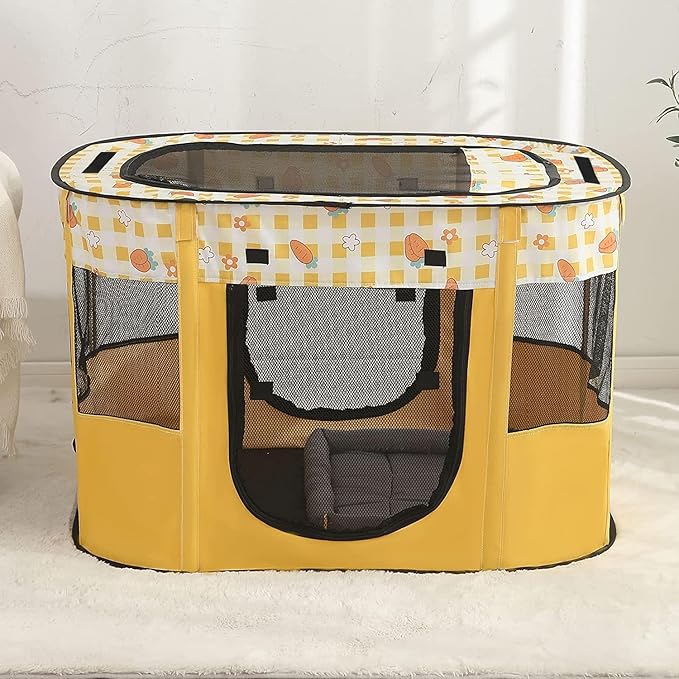Puppy Playpen, Portable Dog Play Pen, Sturdy Cat Playpen, Foldable pop up pet Tent, Pet Playground Indoor/Outdoo (Yellow, Medium)