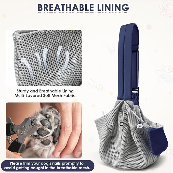 - Convenient Storage Pocket and Machine Washable --- A front zipper pocket of dog carrier sling holds outdoor items like snacks, poop bags, wallet, phone, and keys. The breathable sling bag is machine washable, making cleaning hassle-free
