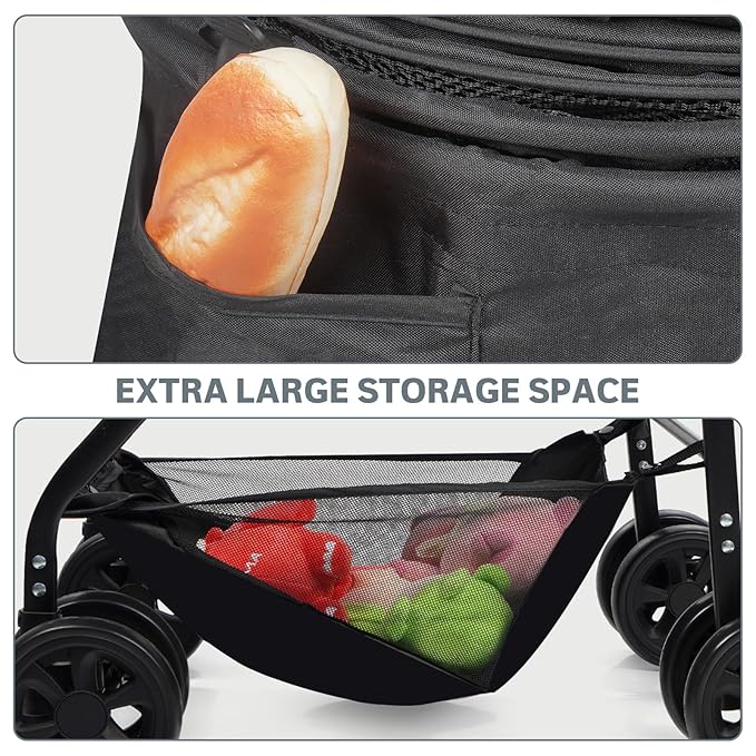 - Less Zippers, More Storage: Our puppy stroller reduces zipper complexity for maximum convenience. It features an extra-large storage basket on the frame and carrier pockets for added space