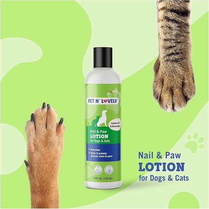 Pet N' Lovely NAIL & PAW PET LOTION | Heals and Protects Delicate Claws & Paws | for Dogs and Cats | Restores Damaged Paws | Fresh Long Lasting Scent | 8 Fl. Oz.