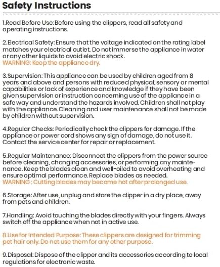 - Low noise & Low Vibration Design:The noise of the dog clippers is lower than 55db when running. Low noise won't make your dog scared and you’ll be able to trim its coat with ease and much faster