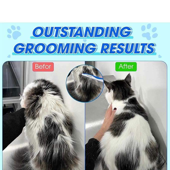 - EFFECTIVE AND SAFE: The comb teeth are designed to effectively remove loose hair, dirt, and tangles without causing discomfort. It serves as both a shedding comb for dog hair comb and a matted fur remover for cats, ensuring safe and gentle grooming sessions for pets with sensitive skin.
