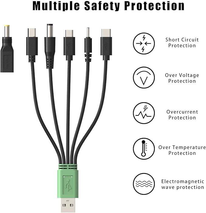 - ✅【What You Would Get】: You will get 1x 6 in 1 charging cable-including 1 micro charging port, 2 USB-C charging ports, 3 DC charging ports. Please don't hesitate contact us if you have any problem of BOEEA dog shock collar charger , We will reply you within 24 hours to help you.Thanks!