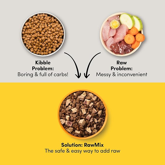 - IT’S RAW, MADE EASY! | The easy and safe way to add raw to your dog’s diet. RawMix33 is a tasty blend of 33% freeze dried raw chicken heart, chicken liver, and chicken gizzards combined with 67% high protein meat bites