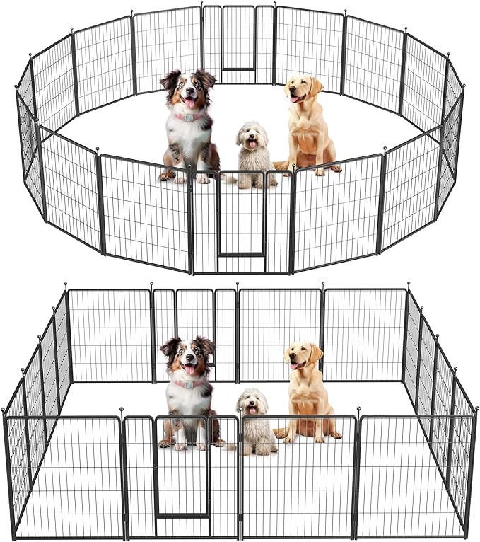 - 【Easy Assemble & DIY Shapes】Each panel is a separate piece. The panels could be assembled in just a few minutes without tools. You could DIY the dog pen to any shape you need, like square, rectangle, round, etc according to your house, garden or lawn.