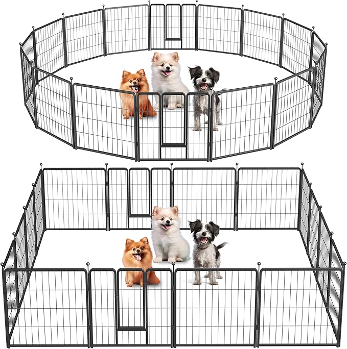- 【Easy Assemble & DIY Shapes】Each panel is a separate piece. The panels could be assembled in just a few minutes without tools. You could DIY the dog pen to any shape you need, like square, rectangle, round, etc according to your house, garden or lawn.