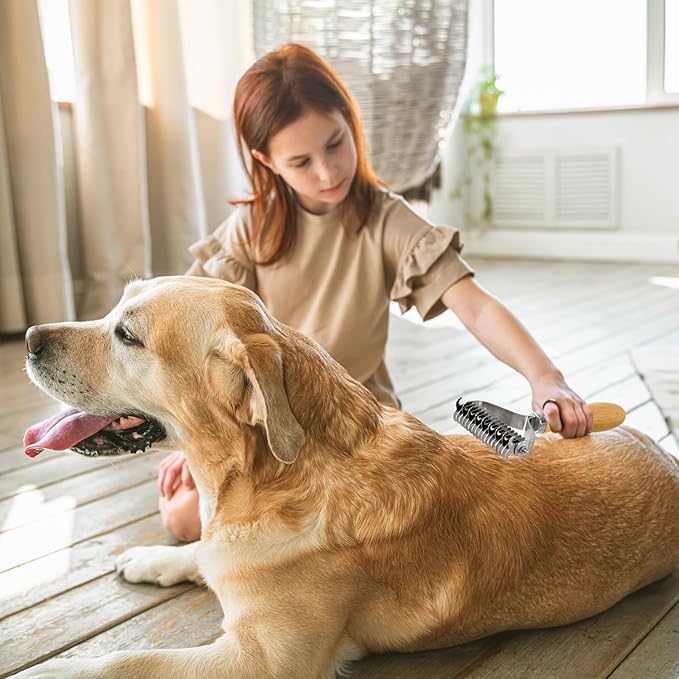 - [Non-Slip Comfortable Grip]:Our dog and cat brush for shedding uses an ergonomic handle that’s made using wood with a smooth finish to provide a secure and comfortable grip in your hands to make grooming your furry friend more comfortable for both you and your pet.
