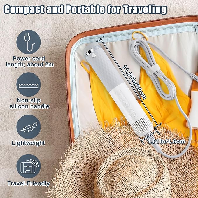 - 【Lightweight and portable】Say bye to bulky water blowers, the compact main unit can be controlled by one hand and weighs only 0.6lbs (without cord), making it a portable dog hair dryer that can easily fit into a suitcase or backpack when travel with your pet
