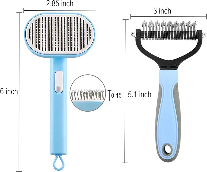 - 【Multi-purpose】Two different types of pet grooming brush are suitable for pets with different lengths of hair. Double-sided dog brush is suitable for long-haired pets, such as long-haired dogs, golden retrievers, samoyeds, etc. Press cat brush is suitable for short hair pets, such as cats, rabbits, etc. It not only massages your pet well, but also provides a cleaner and more comfortable living environment.