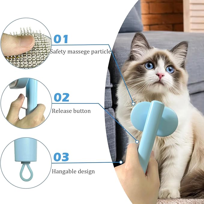 - 【Cat Brush for Shedding】The cat hair brush's stainless steel needles are designed with a 60-degree bend, and the stainless steel tip with a protective plastic rounded head provides excellent grooming of your pet's hair without scratching the skin. Cat grooming supplies with release button, you just have to simply push the button and the hair will be super simple removed from the cat comb.