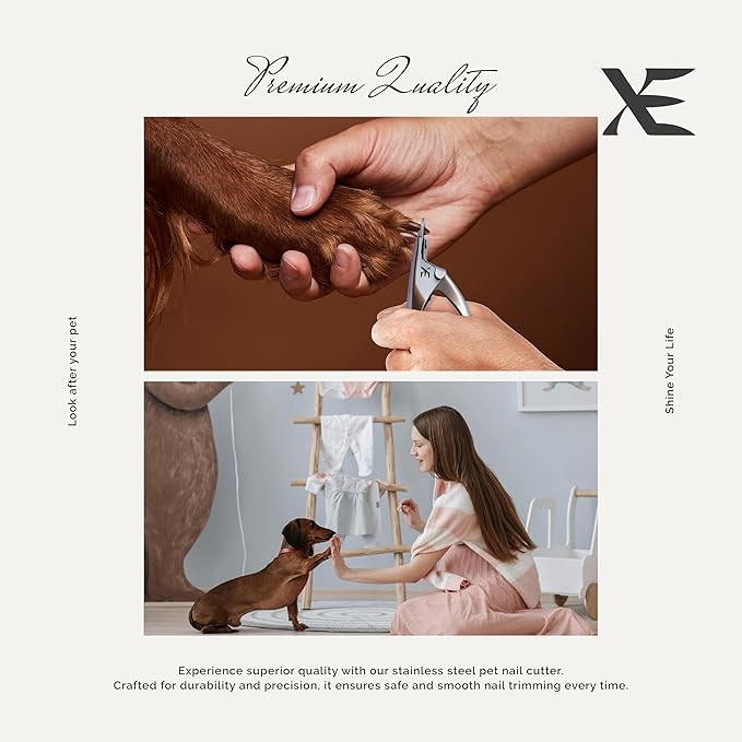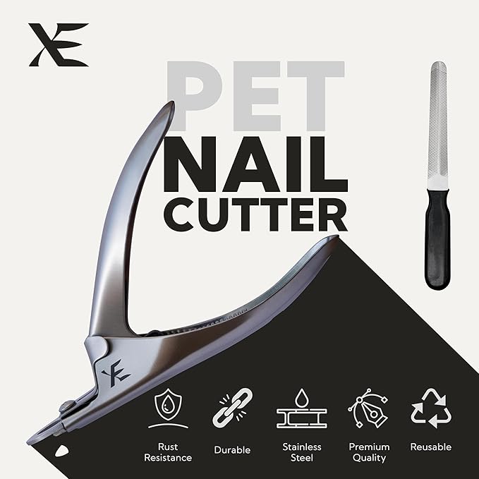 XE Stainless Steel Pet Nail Clipper – Cat and Dog Claw Trimmer with Nail File, Non-Slip Handle Nail Cutter for Pets, Professional Grooming Tool for Dogs, Cats, Rabbit and Guinea Pigs