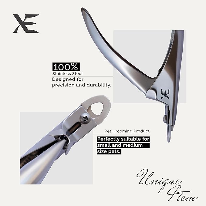 - SHARP AND PAINLESS: Cat and dog nail Clipper comprises of a crescent-shaped edge which trims nail neatly, efficiently and quickly thus making the drawn-out process of pet grooming swift and enjoyable. This grooming tool helps avoid the problems that come with long nails such as accumulation of dirt, destruction of furniture, infection, broken nails, splintered nails, deformed paws, pain and discomfort etc.