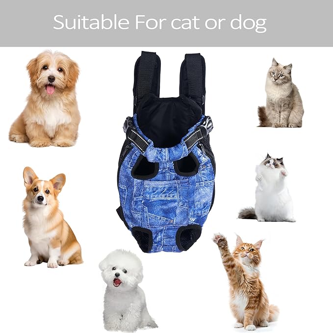Pet Carrier Backpack Pet Tote Bags for Cats or Doggies, Portable Puppy Travel Carrier Bags, Cozy Soft Pet Puppies Carriers Slings Backpacks (Denim, Large (Pack of 1))