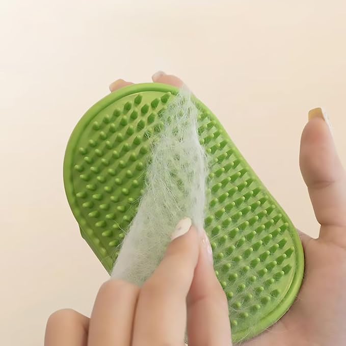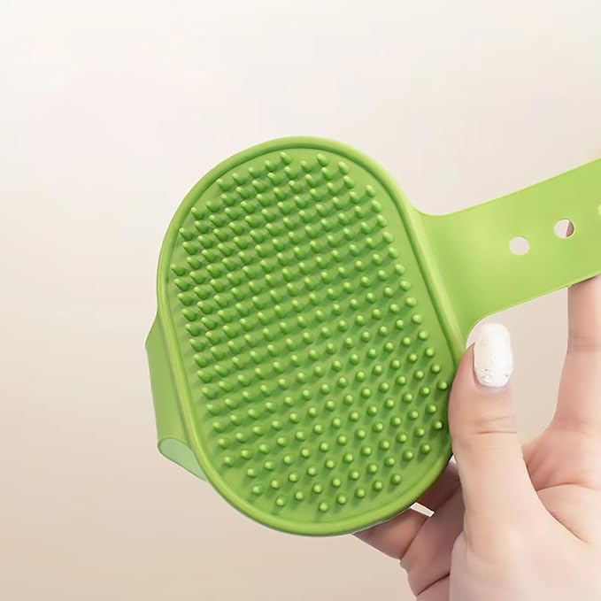 - Durable Dog Brush ; This dog bath massage brush is made of high-quality rubber material, which will not scratch your pet's skin. Ergonomically designed, it disperses foam very easily to deep clean your pet's coat and remove loose fur and dead skin. Make bath time more relaxing and enjoyable