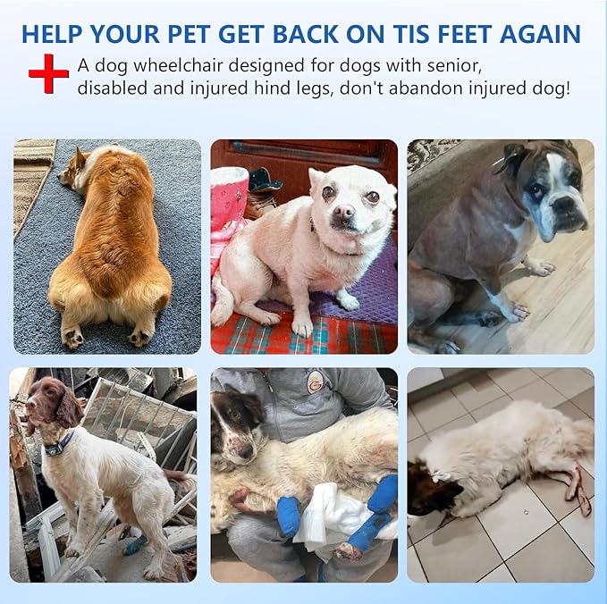 - 【Friendly Tips】- Please measure your dog before buying. Our dog wheelchairs are only suitable for pets with disabled hind legs but normal front legs. If your dog is seriously injured, we recommend that you go to the veterinary hospital for help as soon as possible.Pets are one of our family members. If they are disability, please don't give up. A WHEELCHAIR may give them a second life. I wish your pet a speedy recovery!