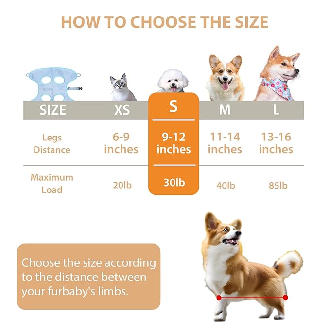 - This S size dog restraint for nail clipping is suitable for medium dogs that front and rear leg distance is between 9~12in, weighing under 30lb. Please check your pets' body size data and make a reference of the size form in main picture before purchase.