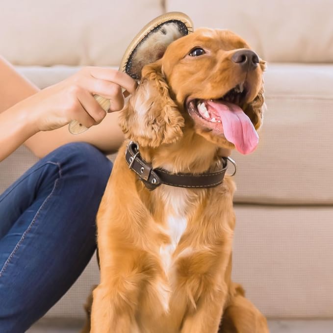 - 【Medium Pin Dog Brush】20mm stainless steel round pins can comb through long and thick hair, reaching the undercoat. This wooden dog pin brush effectively cleans sticky dirt, stains, food residue, and tangled hair. The pins are firmly embedded and do not easily fall off. Round-ended bristles ensure a safe and comfortable grooming session for both you and your pet. Medium-length pins are suitable for any hair type on cats and dogs.