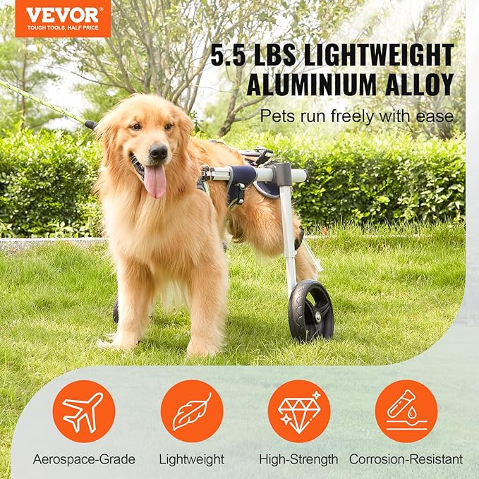 - Exclusive Design: The dog wheelchair has an aluminum frame, adjustable straps, EVA wheels, foam leg straps and a 2m/6.56ft dog leash. It's designed to help pets with disabled hind legs move comfortably outdoors.